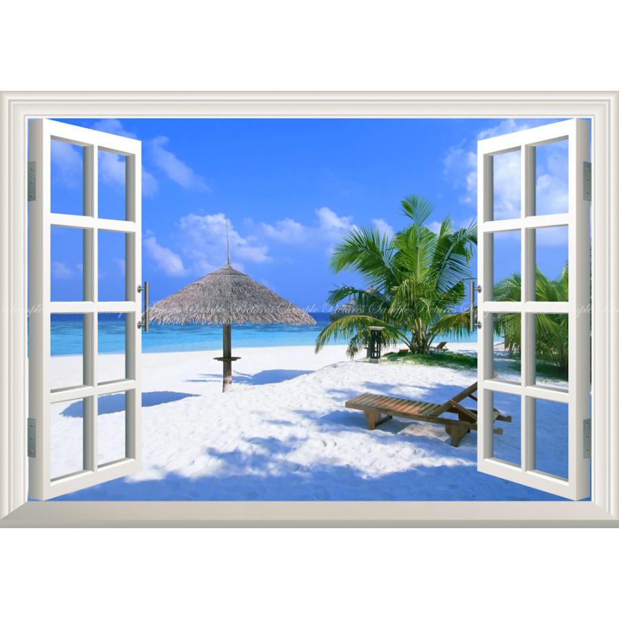 ウォールステッカー 壁紙シール シールタイプ 窓辺 窓枠 景色 風景 3d 立体的 南国 海 ビーチ 砂浜 青空 美麗壁シールトリックアート だまし絵 おしゃれ きれい 飾り付け ルームデコレーション ウォールデコレーション Diy 模様替え イメー 品番 Fq Plusnao